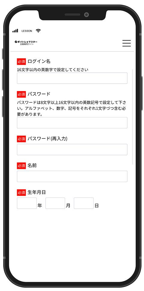 招待メール内のURLにアクセスして必要事項を入力してください。